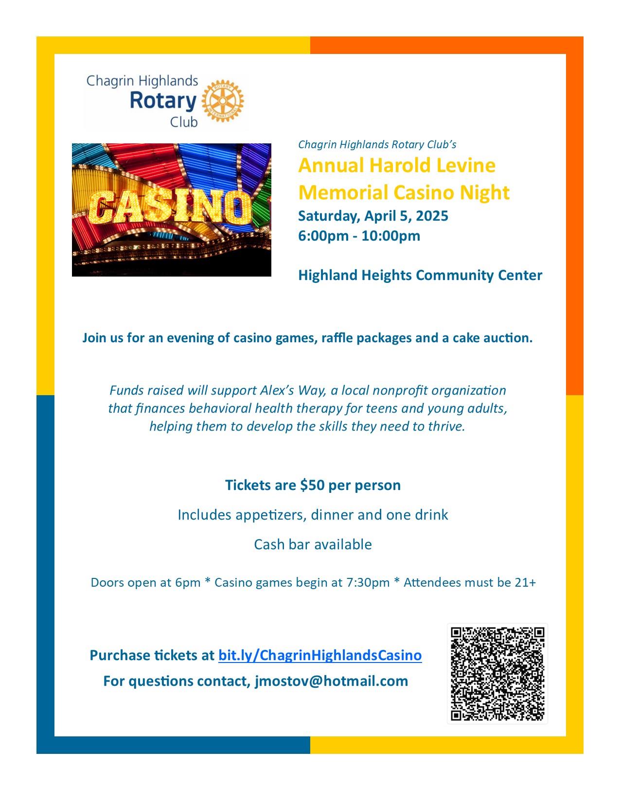 Tickets are $50 per person and include appetizers, dinner and one drink.